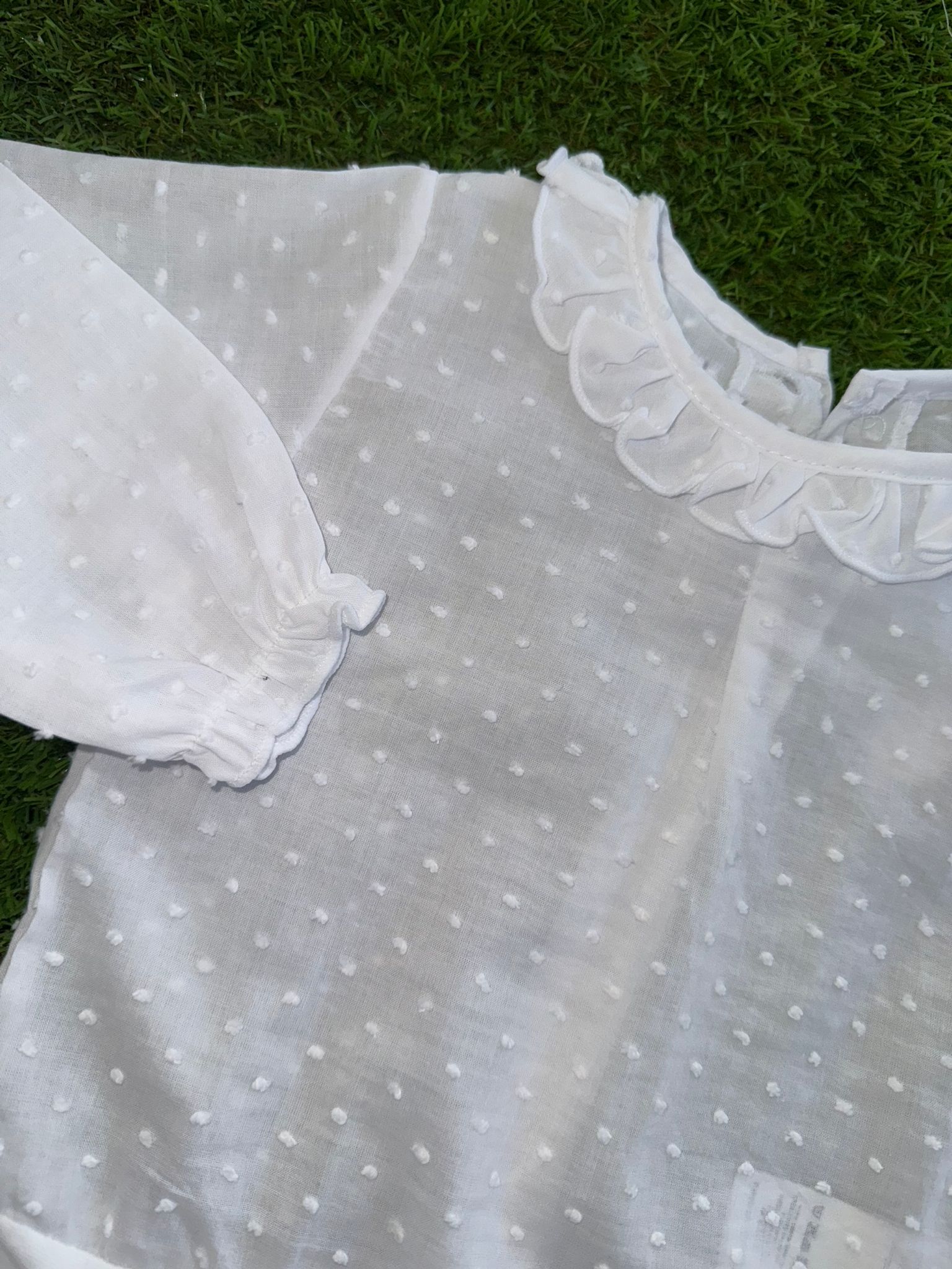 Body de plumetis color blanco, mitad algodon, mitad plumetis